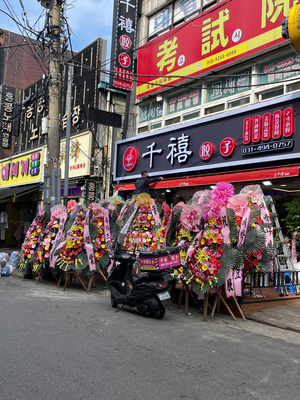 То, что точно удивит не только россиян, но и многих других, так это отличительные знаки, по которым легко определить, что заведение недавно открылось или что в стране праздник. Для этого в качестве украшений корейцы используют венки. В России такие аксессуары принято использовать для прощания с усопшими.