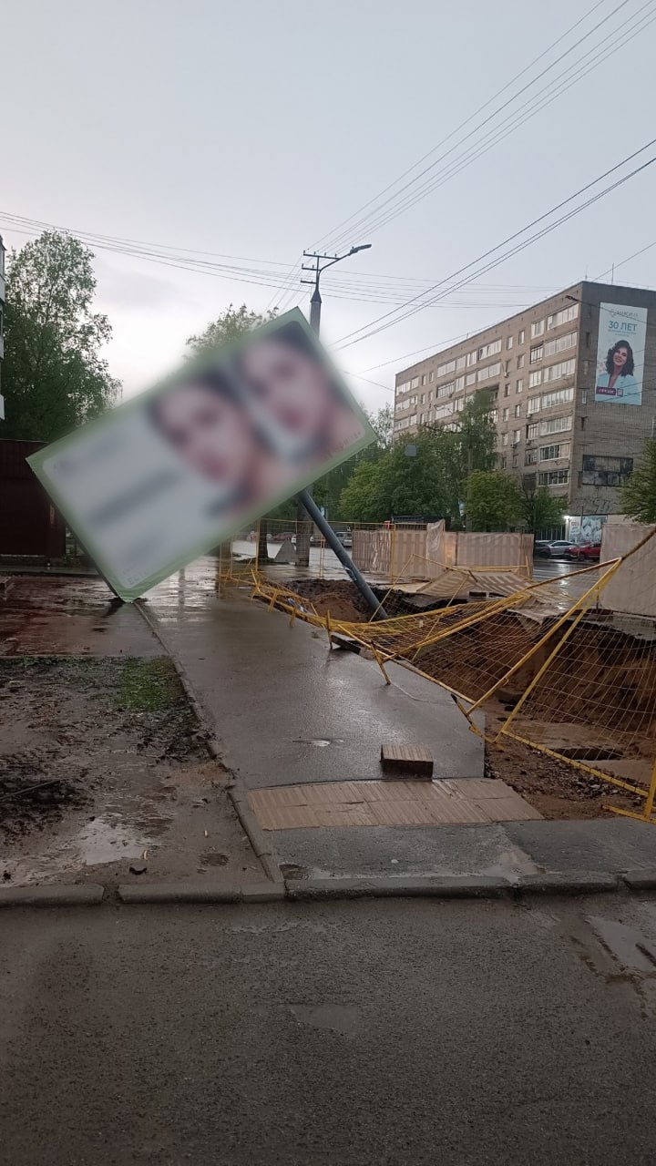 Однако мэр Александр Новиков был недоволен: ранее в соцсетях распространились кадры, на которых виден билборд, упавший на тротуар, из-за находящегося рядом раскопа.