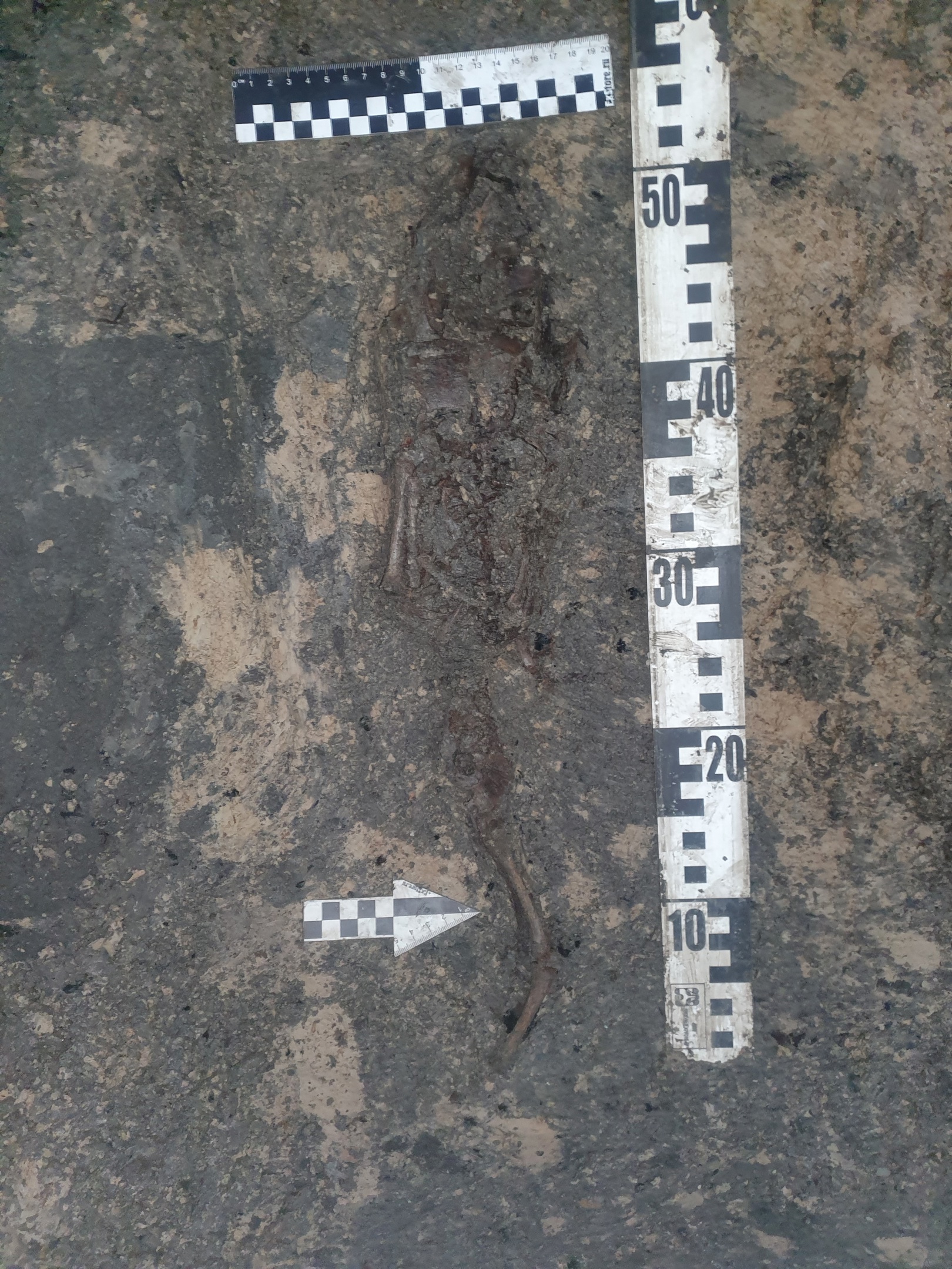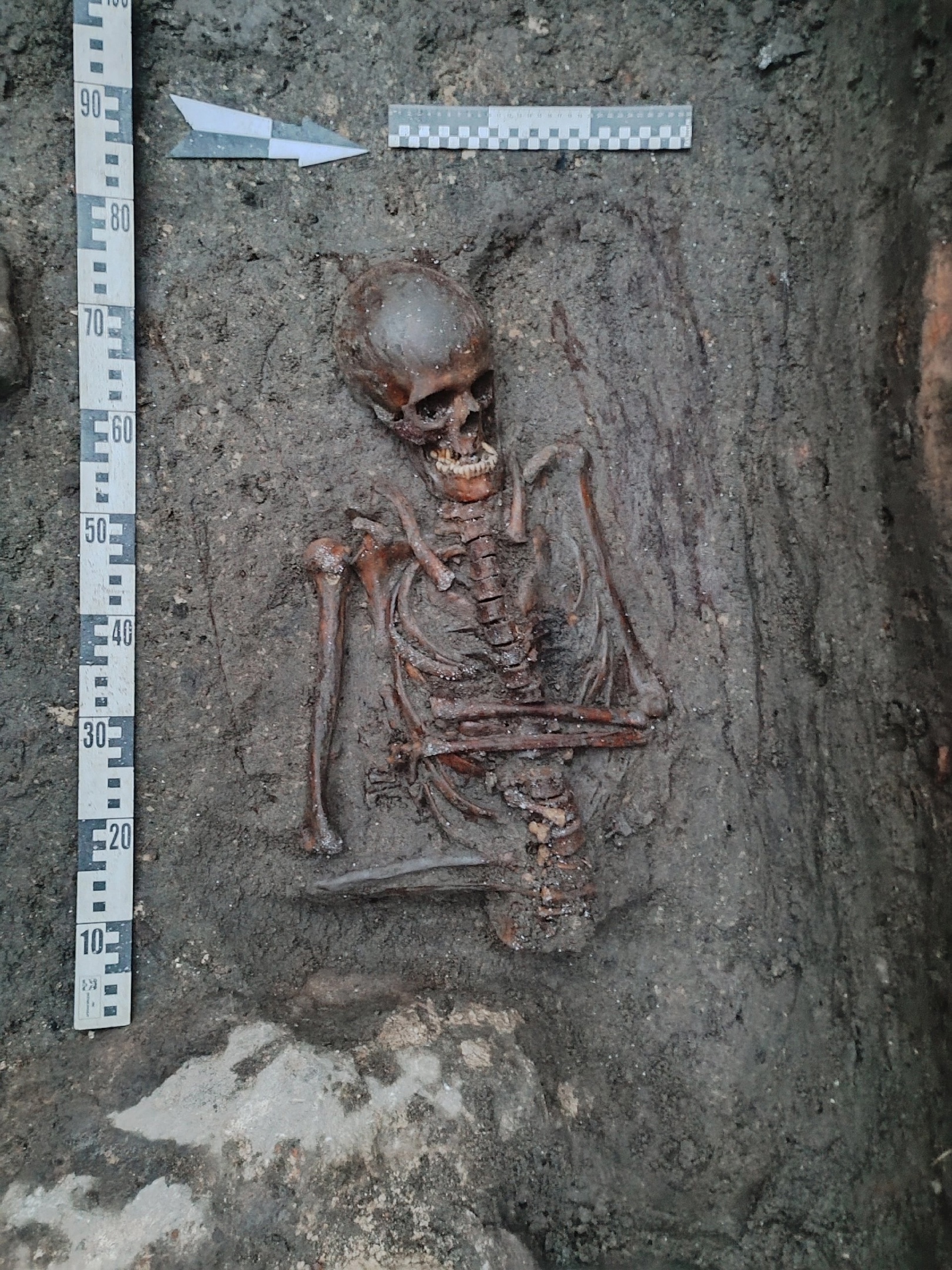 Метро от нынешней поверхности второго шурфы археологи нашли несколько валунов, а еще ниже — несколько погребений и фрагменты керамики XV-XVI веков. В итоге специалисты насчитали останки минимум 10 разных людей, среди которых мужчина в возрасте и младенец.