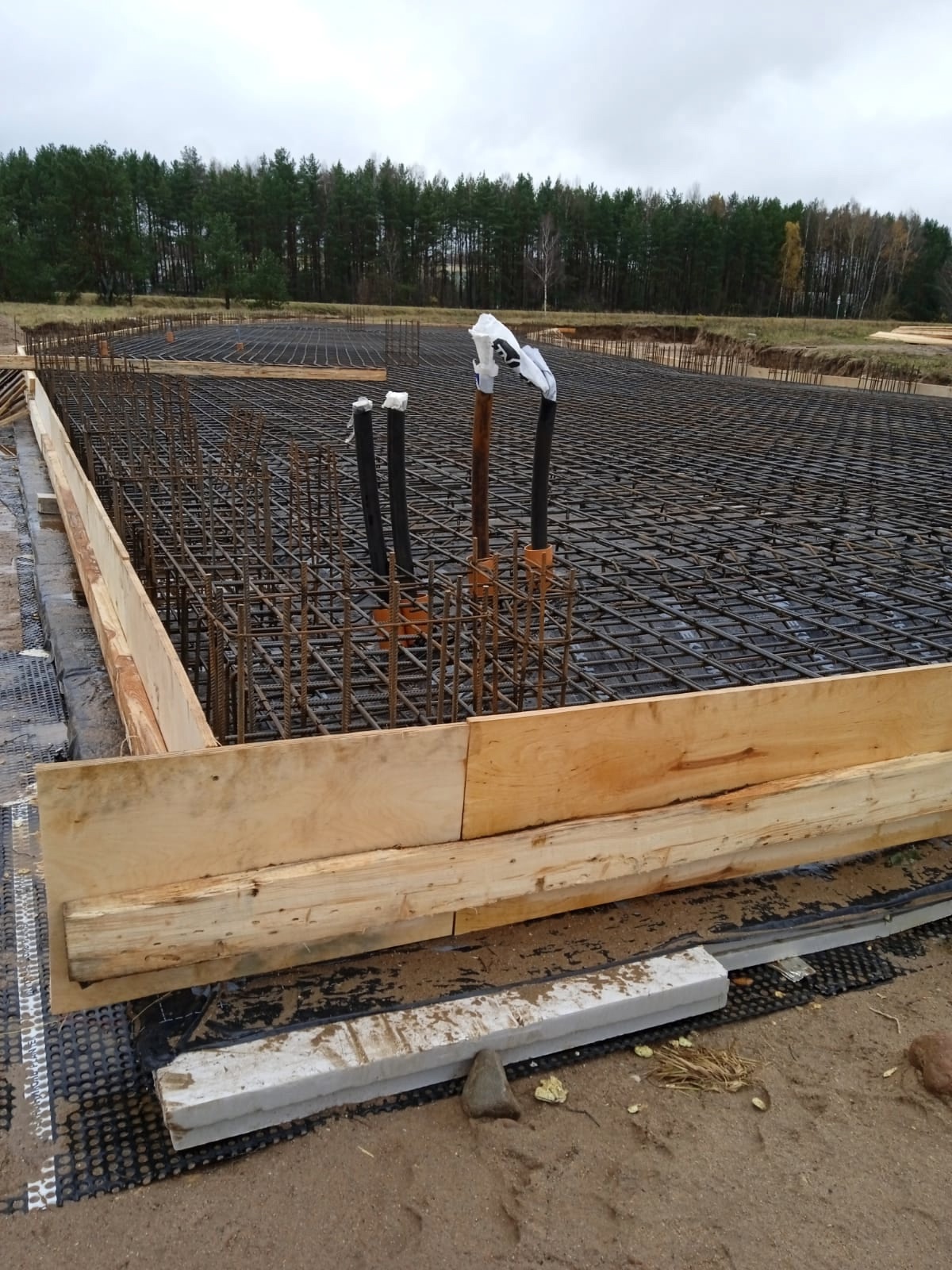 Сейчас рабочие заливают бетоном фундамент плиты.